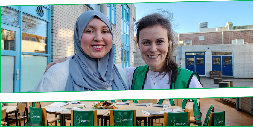 Voor dit initiatief zijn leerlingen uit groep 5, 6 en 7 geselecteerd. Zij vormen het Green Team: herkenbaar aan hun groene hesjes treden ze op als ambassadeurs van het nieuwe plein. Elke woensdag komt Nienke langs voor een les. Ze ontwikkelde de training gebaseerd op wetenschappelijk onderzoek over de positieve effecten van vergroening op het mentaal en fysiek welzijn van kinderen.